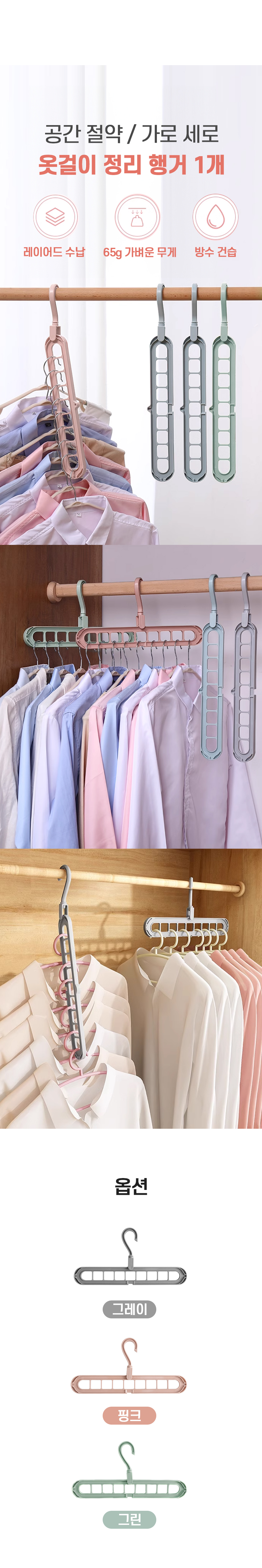 공간활용 옷걸이 정리 대 회전형 걸이 멀티 행거 그린
