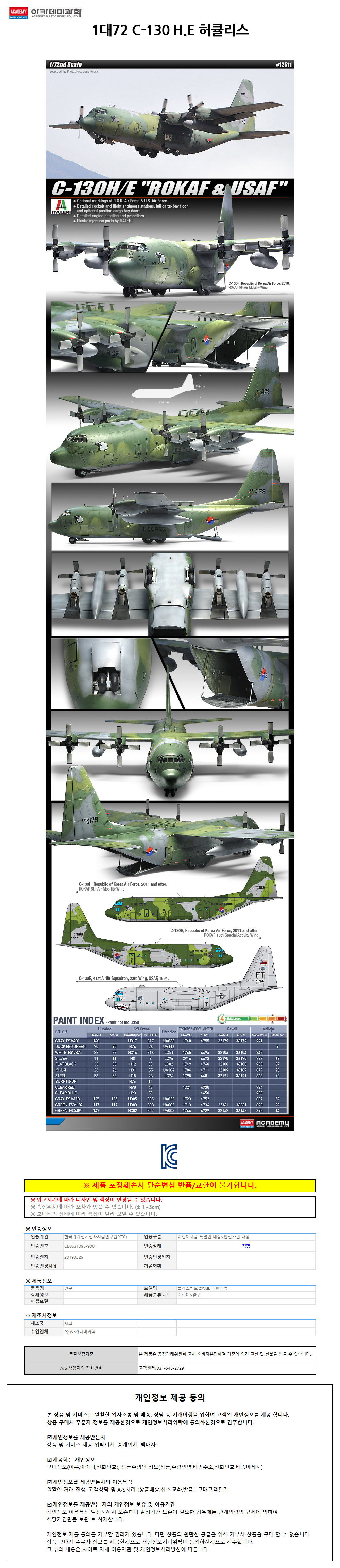 아카데미 1대72 C-130 H.E 허큘리스 12511