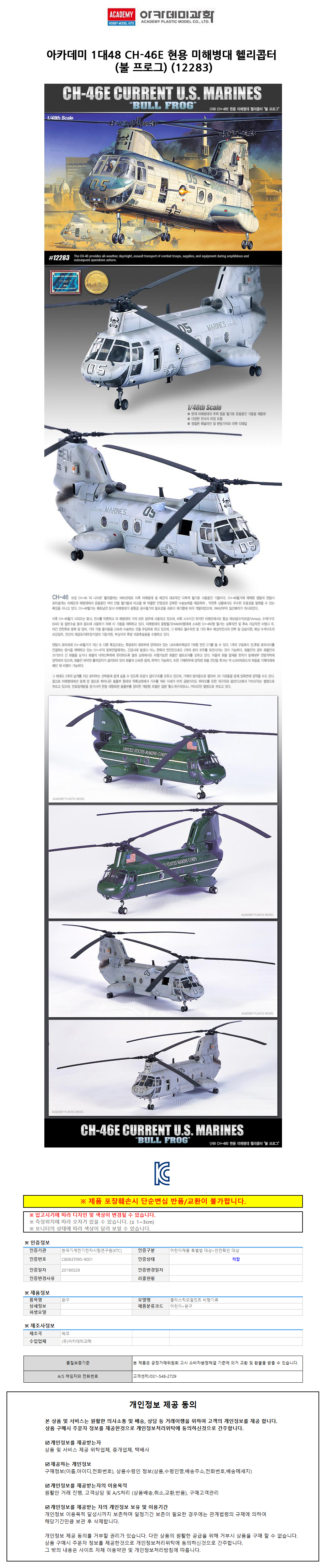 아카데미 1대48 CH-46E 현용 미해병대 헬리콥터 불 프로그 12283