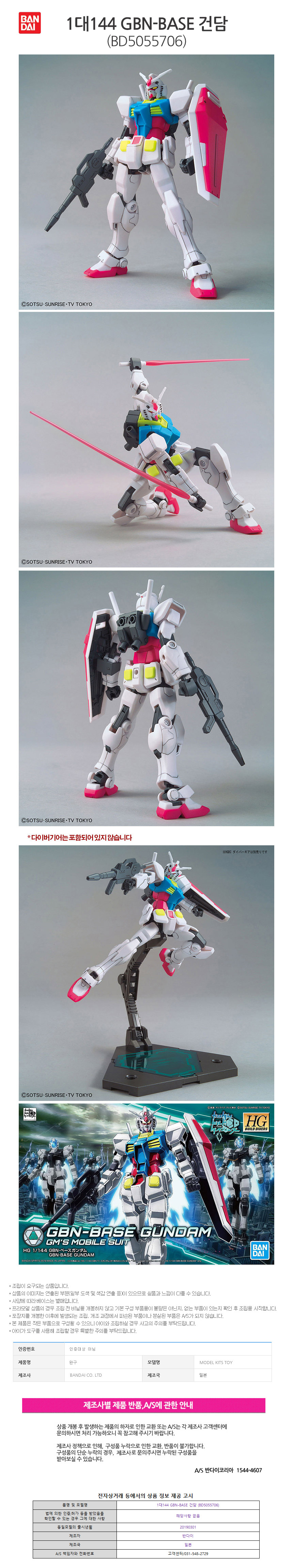 반다이 1대144 GBN-BASE 건담 BD5055706
