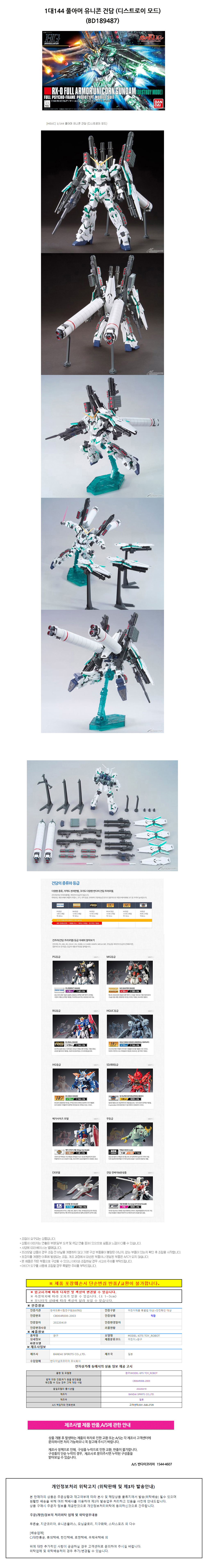 반다이 HGUC178 1대144 풀아머 유니콘 건담 디스트로이 모드 BD189487