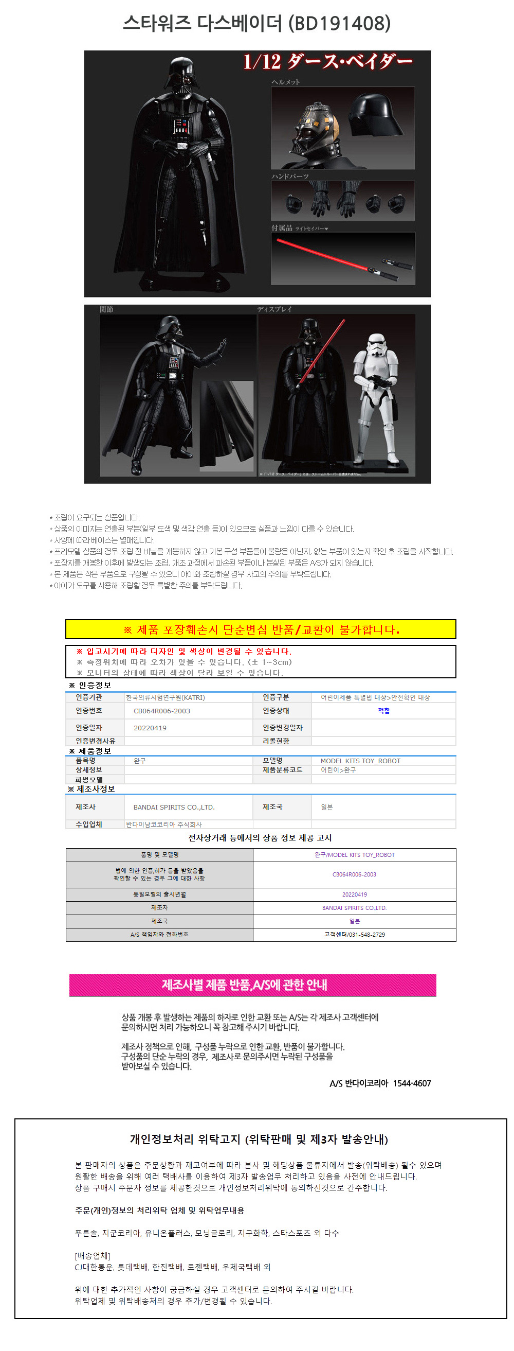 반다이 프라모델 1대12 스타워즈 다스베이더 BD191408