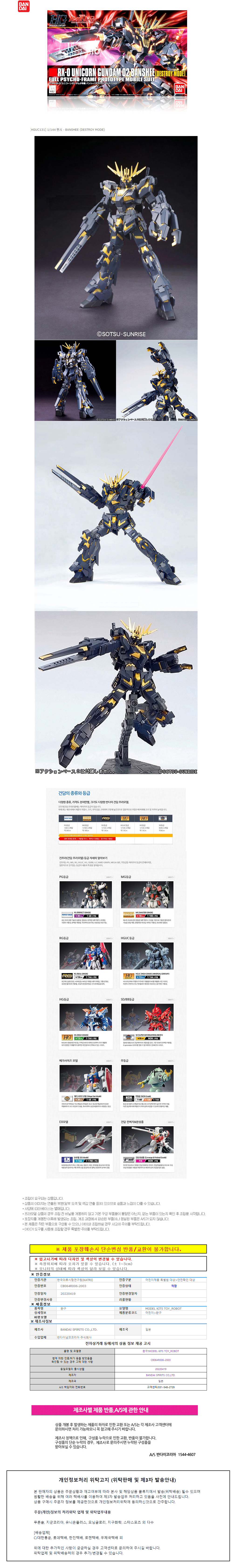반다이 HGUC134 1/144 RX-0 02 밴시 BANSHEE DESTROY MODE