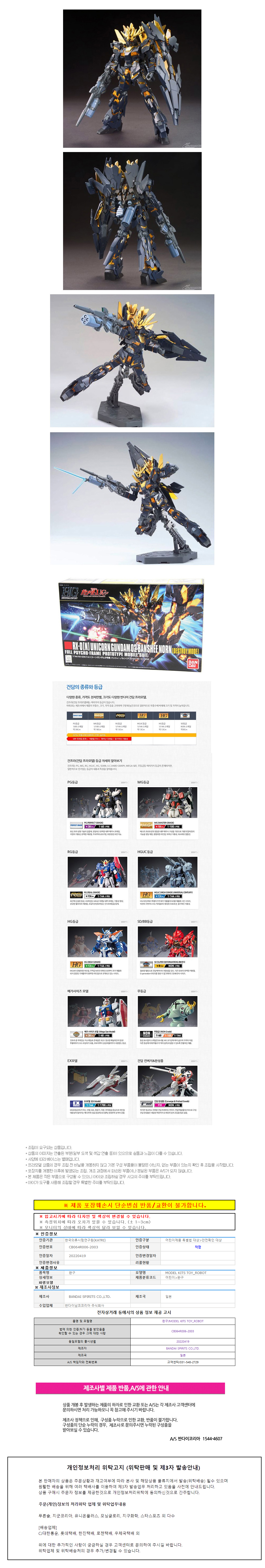 반다이 HGUC175 1/144 유니콘 건담 2밴시 노른 디스트로이 모드 BD189503