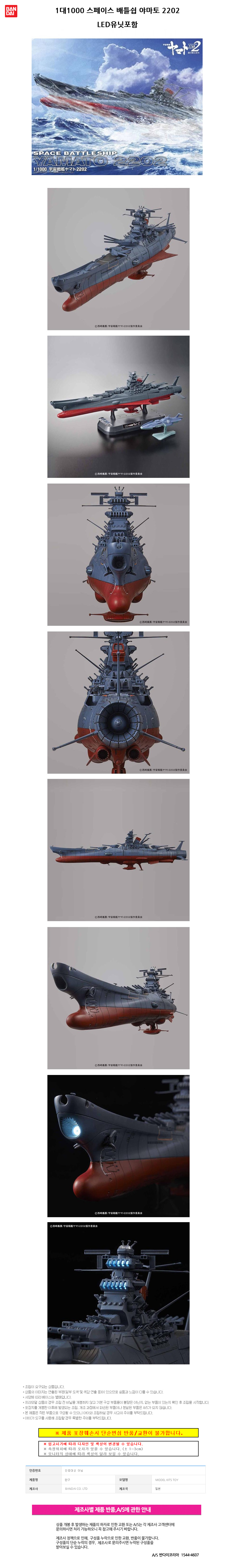 반다이 1대1000 스페이스 배틀쉽 야마토 2202 LED유닛포함 BD219552