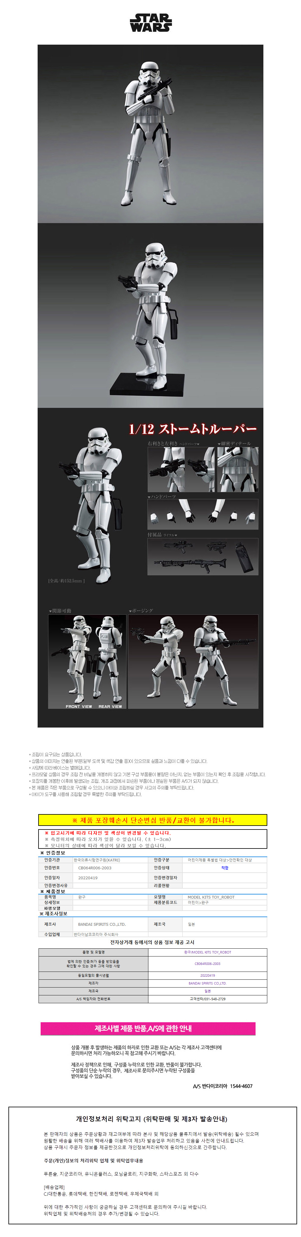반다이 프라모 1대12 스타워즈 스톰트루퍼 BD194379
