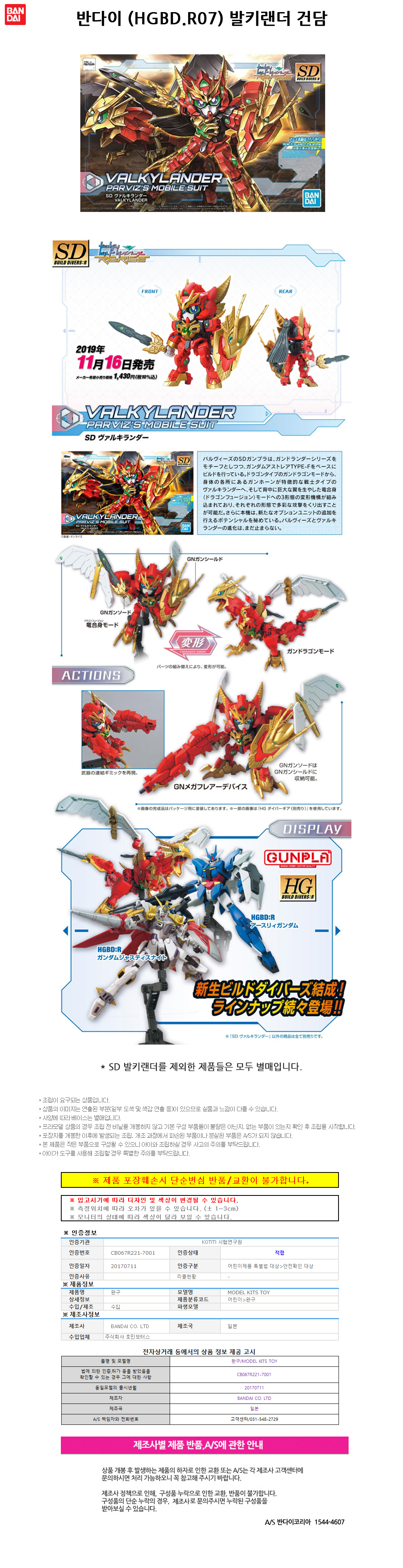 반다이 HGBD.R07 발키랜더 건담 BD5058219
