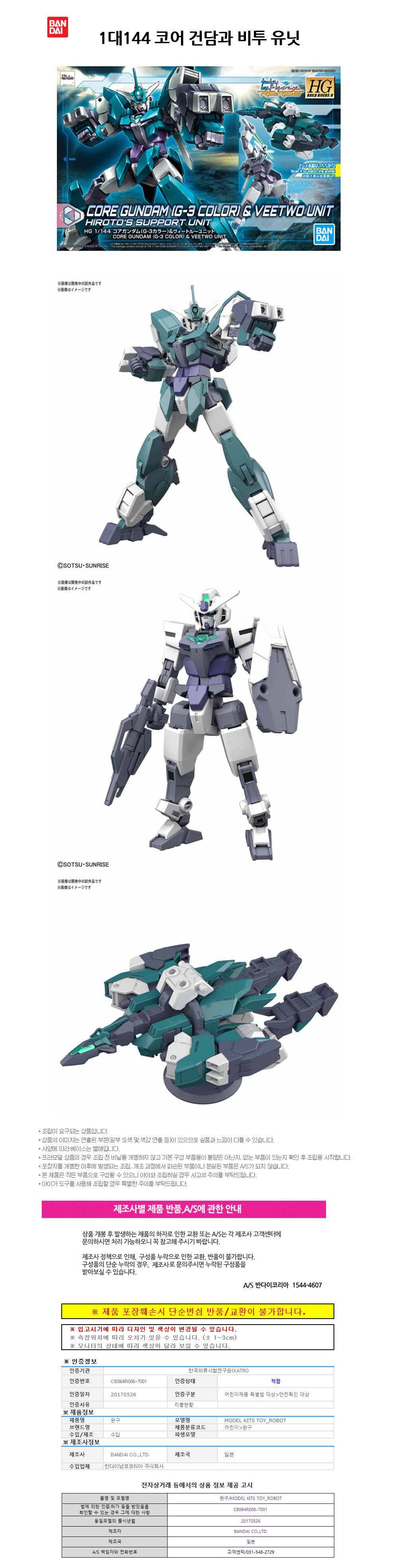 반다이 HGBD.R 006 1대144 코어 건담과 비투 유닛 BD5058300