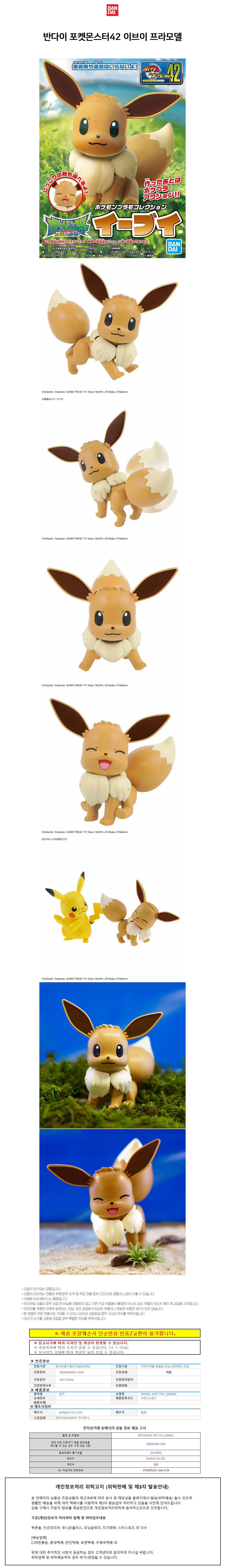 반다이 포켓몬스터42 이브이 프라모델 BD5055590