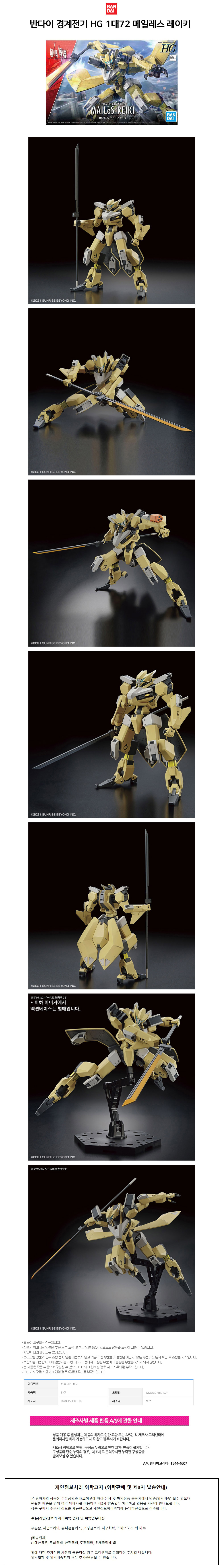 반다이 경계전기 HG 1대72 메일레스 레이키 BD5062950