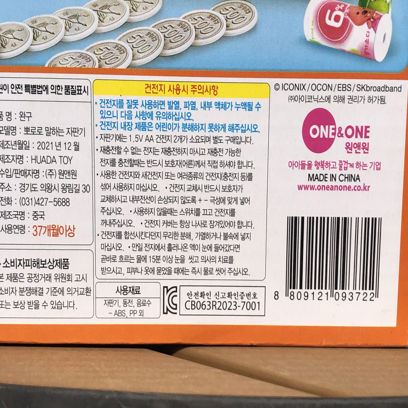 원앤원 뽀롱뽀롱 뽀로로 말하는 자판기 음료수가 짠