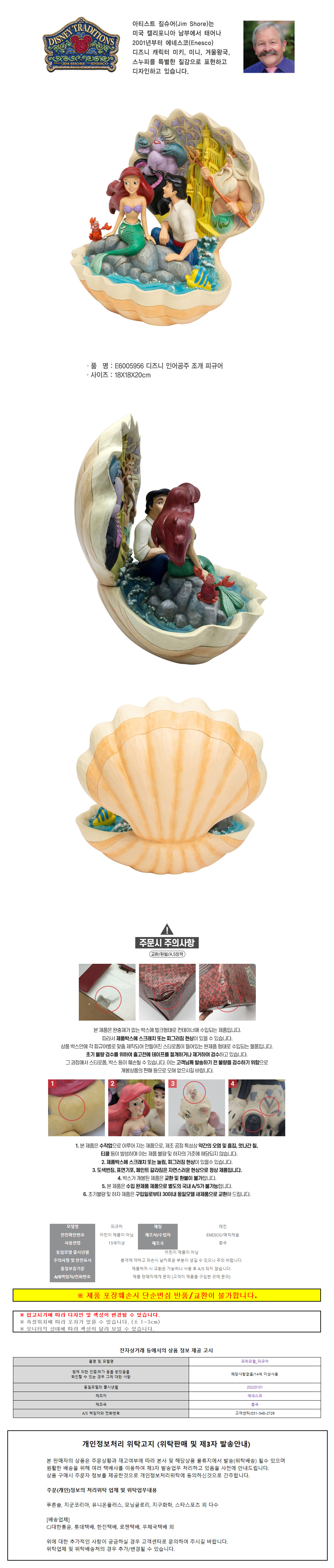 에네스코 디즈니 인어공주 조개 피규어 20cm E6005956