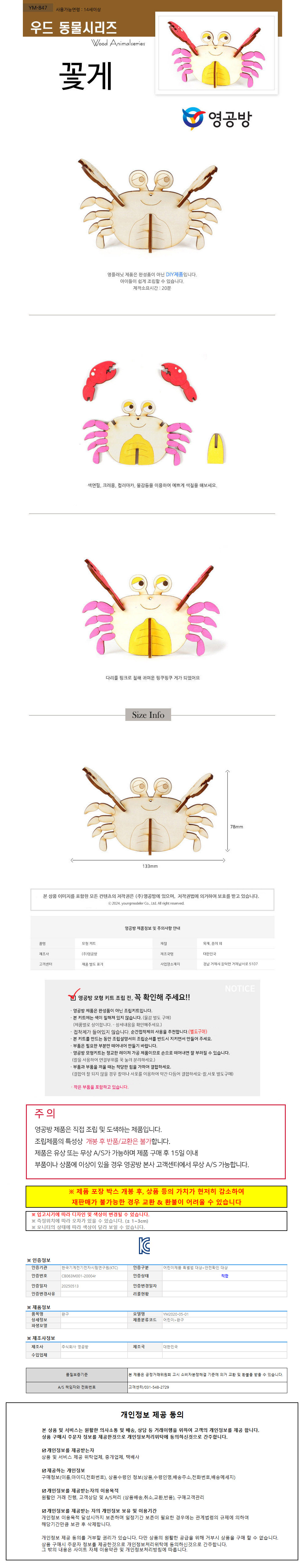 영공방 우드동물 꽃게 (YM847)