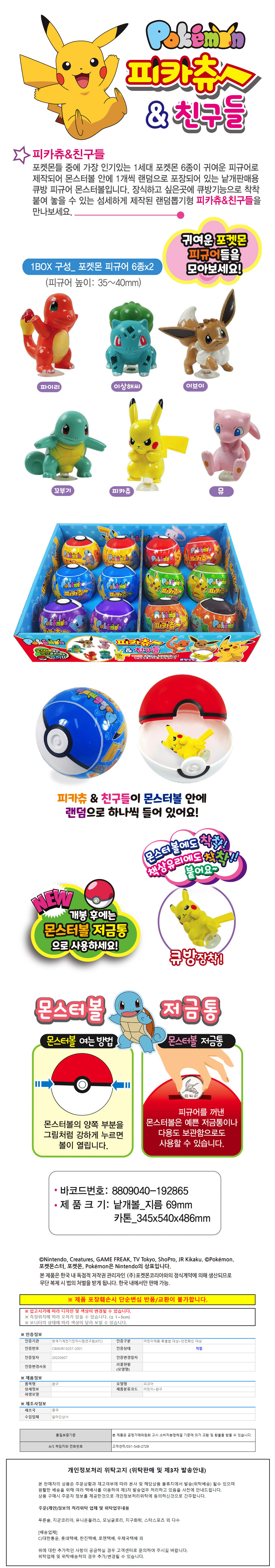 알라딘 포켓몬 피카츄와 친구들 큐방 피규어 (12개입) (1박스)