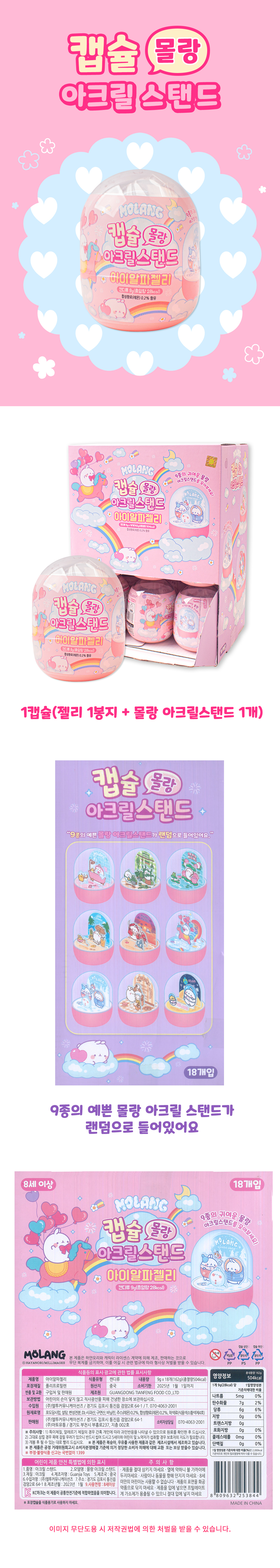 | 품명 및 모델명 | 캡슐 몰랑 아크릴스탠드 아이알파젤리 1개 몰랑이 피규어 |