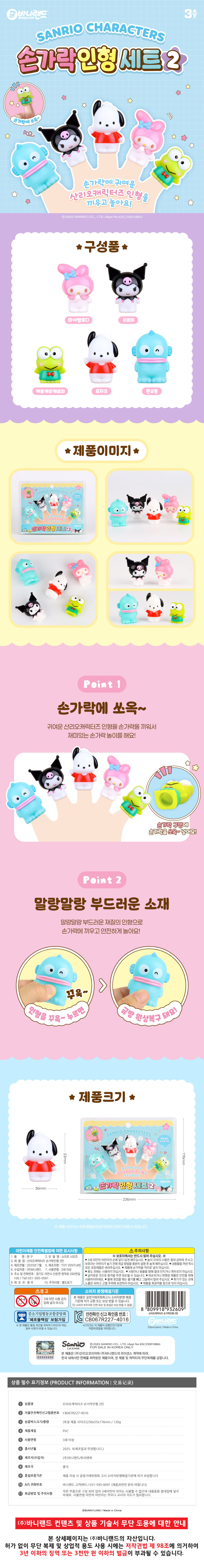 품명 및 모델명 산리오캐릭터즈 손가락 인형 세트 2탄