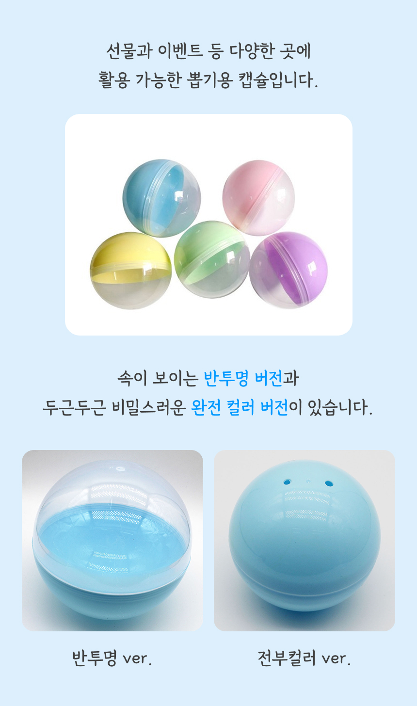 빈 캡슐 뽑기 공 기계 캡슐 원형 추첨볼 투명 플라스틱 랜덤 가챠 가샤폰 행사용 문방구