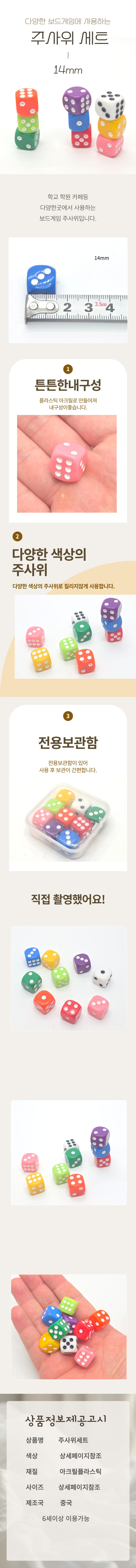 | 품명 및 모델명 | 14mm 미니 컬라 이쁜 보드게임 주사위 |
