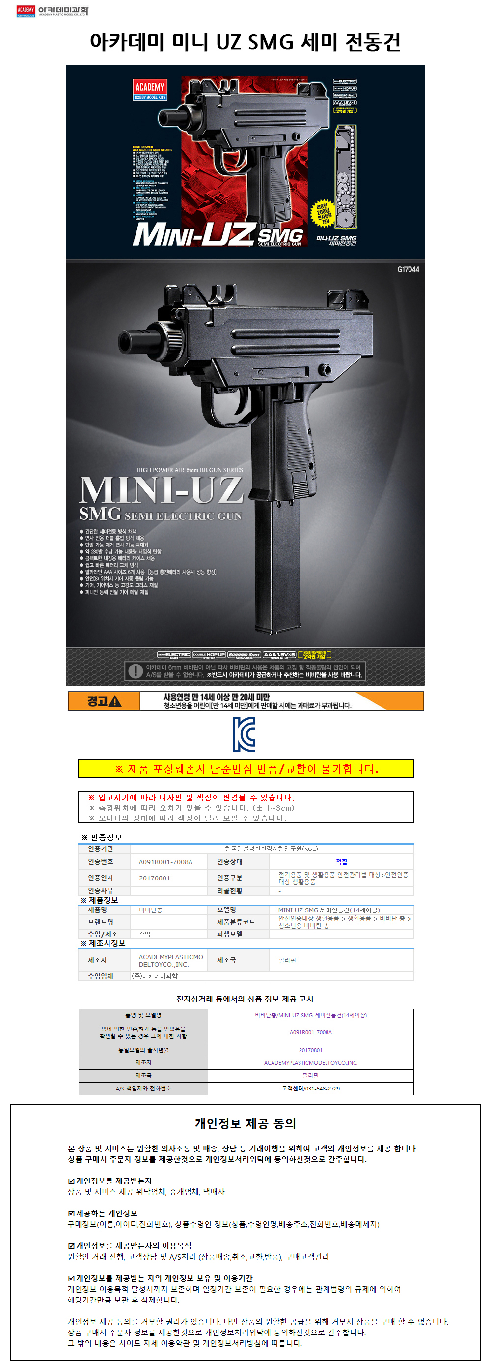 아카데미 미니 UZ SMG 세미 전동건 17403