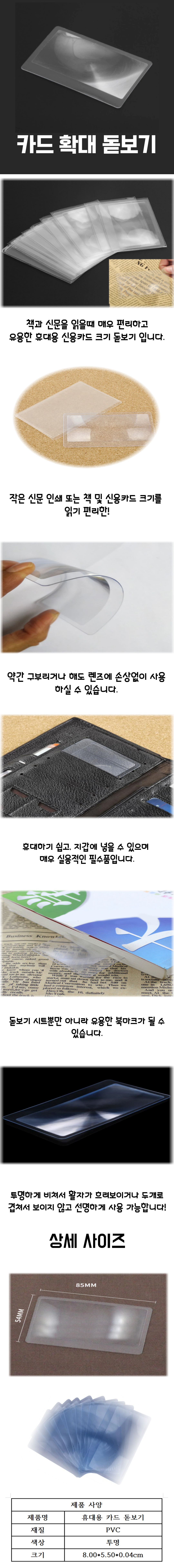 카드확대경 확대 프레넬 렌즈 포켓 투명 돋보기 확대