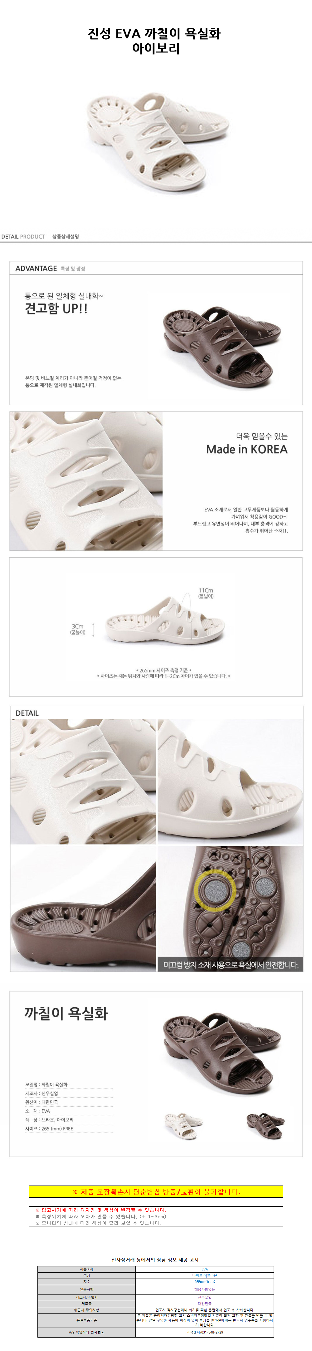 진성 EVA 까칠이 욕실화 아이보리
