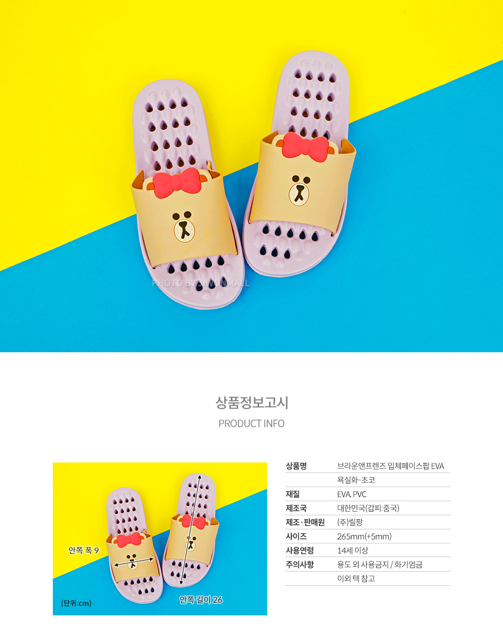 브라운앤프렌즈 입체페이스팝 EVA 욕실화-초코