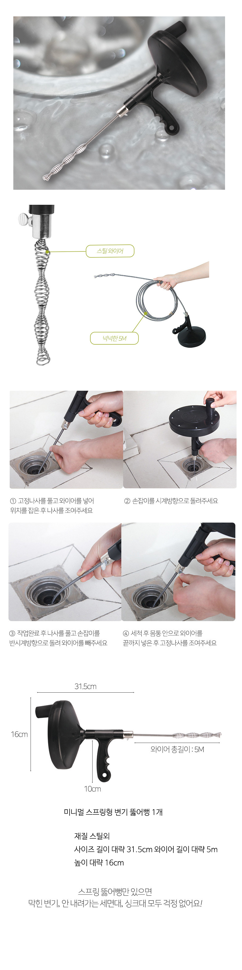 미니멀 스프링형 변기 뚫어뻥1개