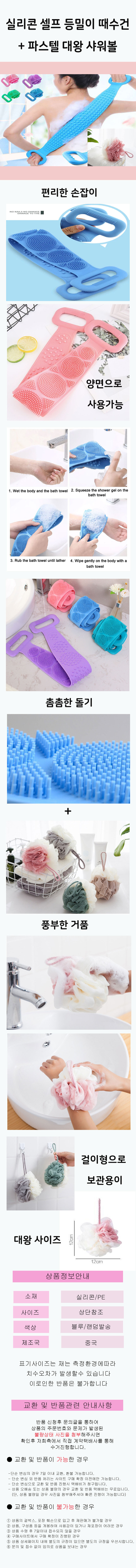 실리콘 셀프 등밀이+파스텔 대왕 샤워볼 샤워타월