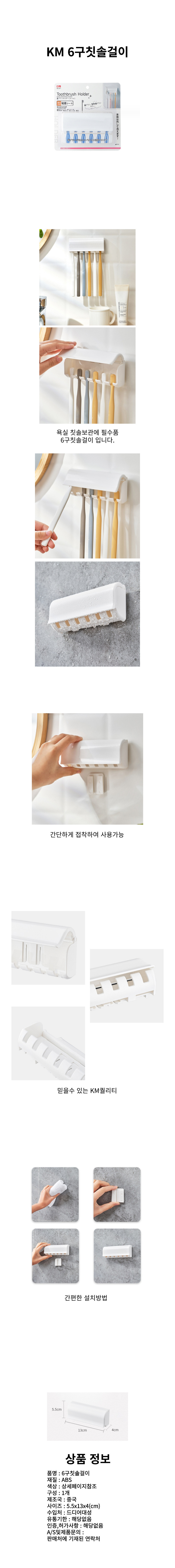 KM 접착식 다용도 6구 칫솔 걸이 거치대
