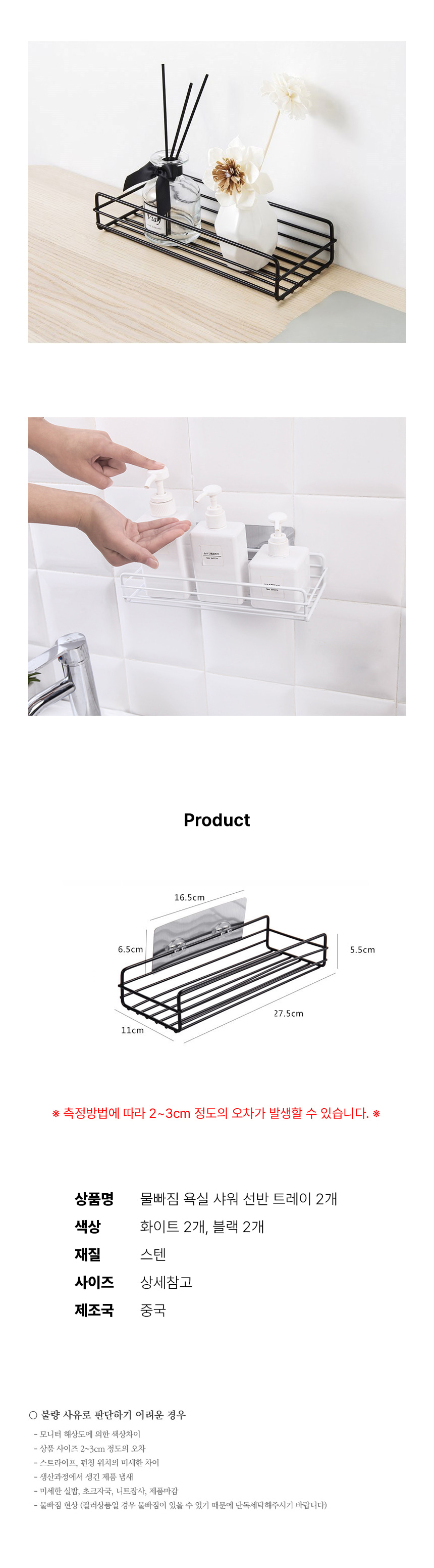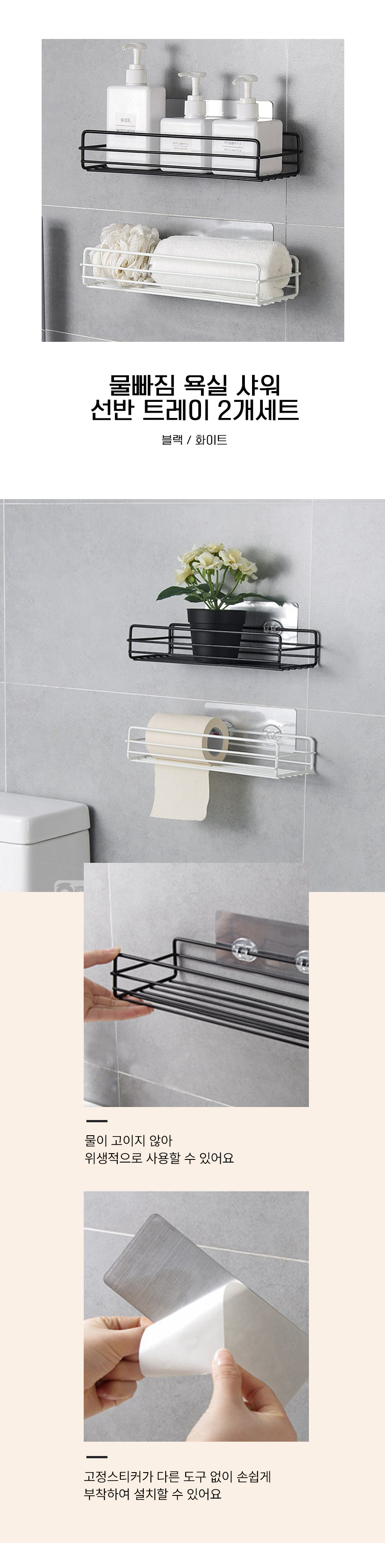 욕실 화장실 수납 정리 물빠짐 선반 블랙 2개