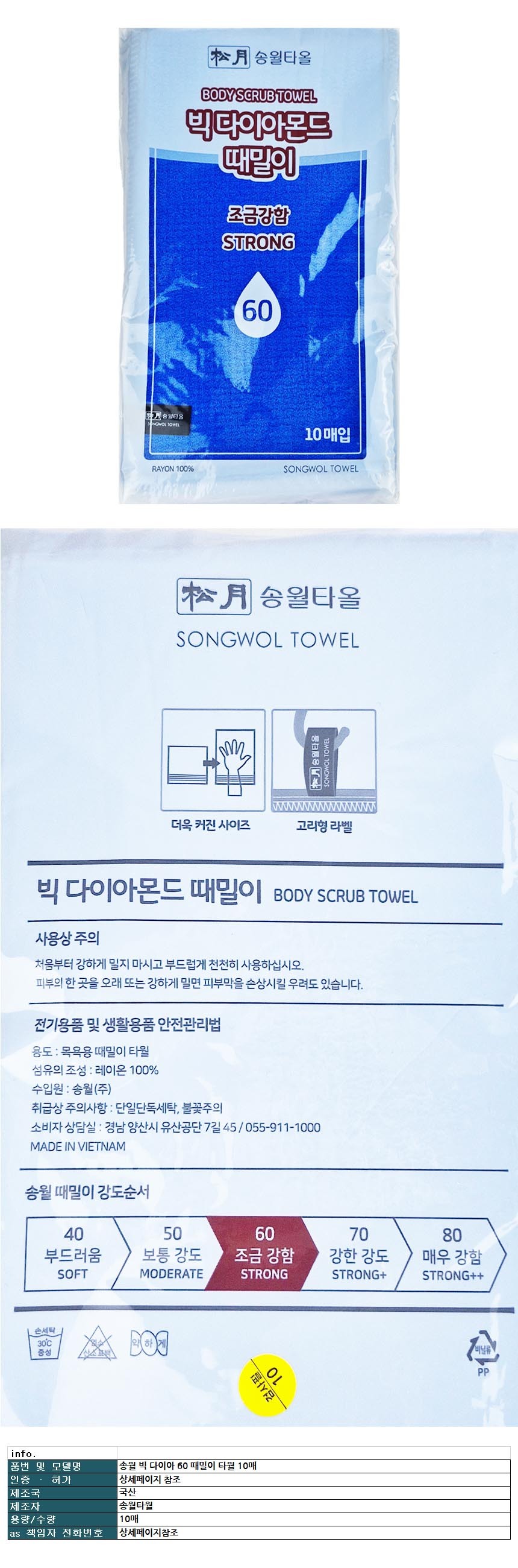 송월 빅 다이아 60 때밀이 타월 10매