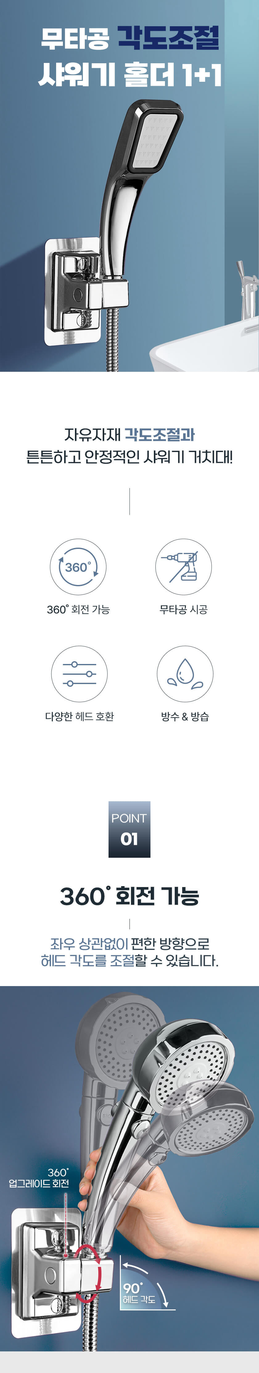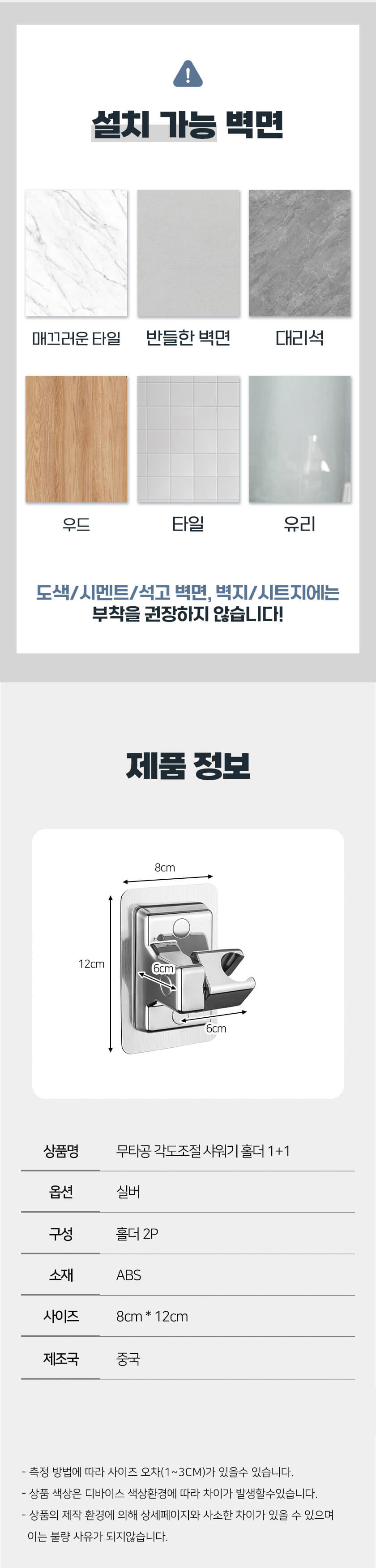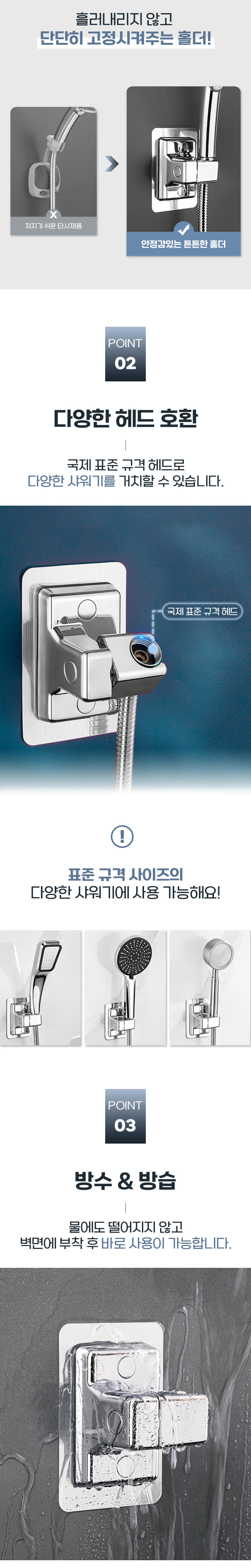 욕실 샤워기 고정 걸이 홀더 무타공 헤드 거치대 2P