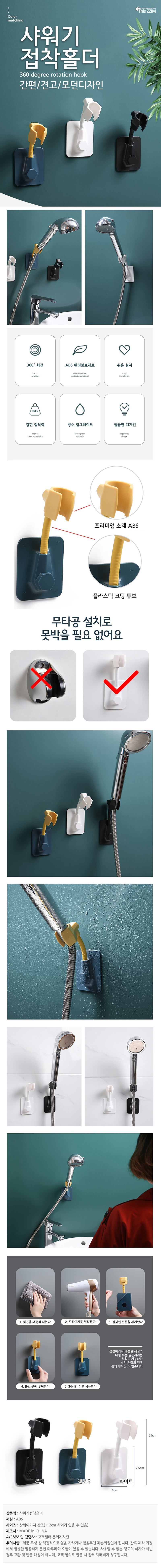 [별별창고]G 무타공 초강력 부착식 샤워기 거치대 접착 홀더 각도 조절 샤워기 걸이