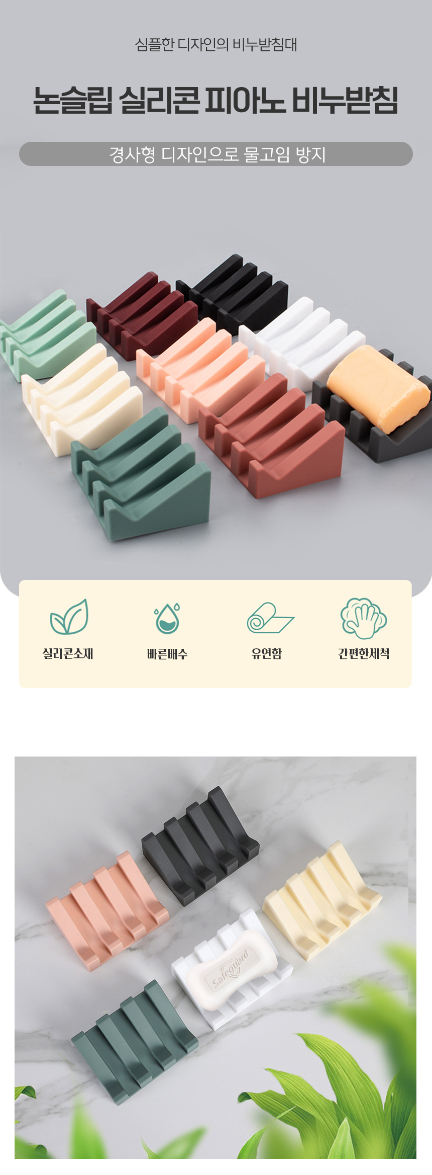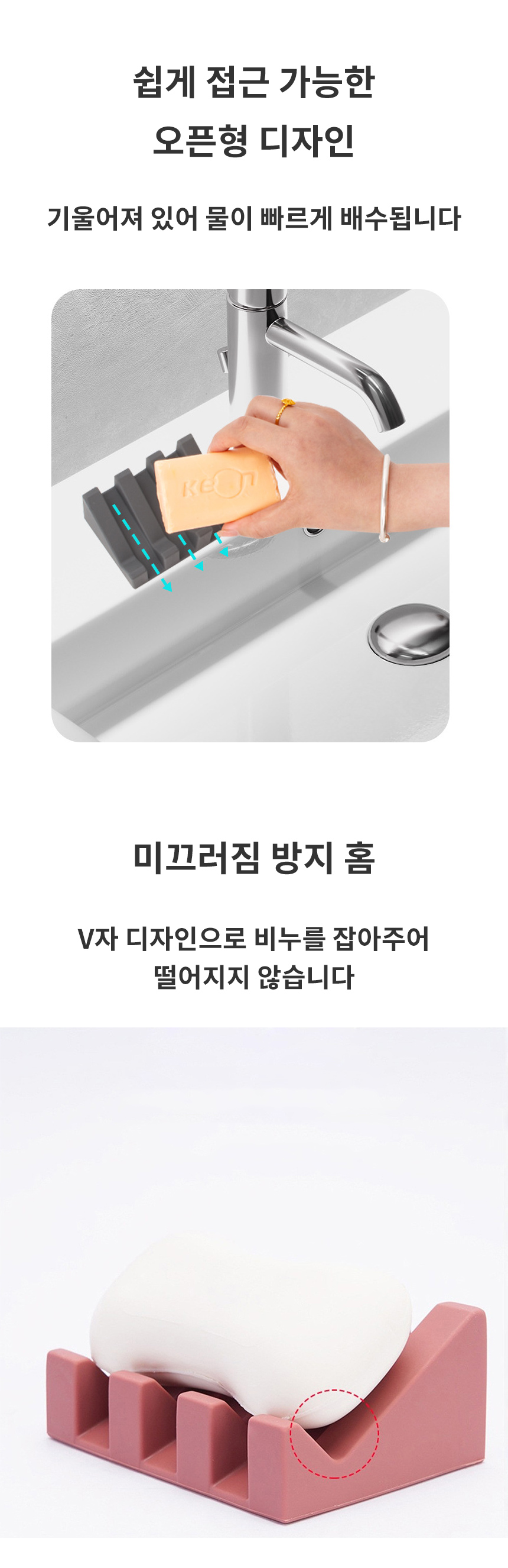 실리콘 물빠짐 세면대 비누 곽 각 거치 받침 대 gray