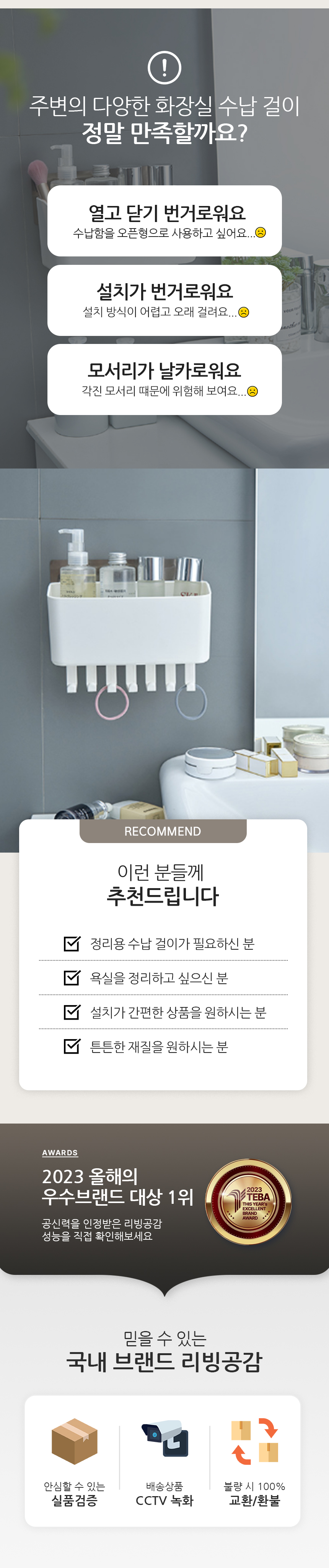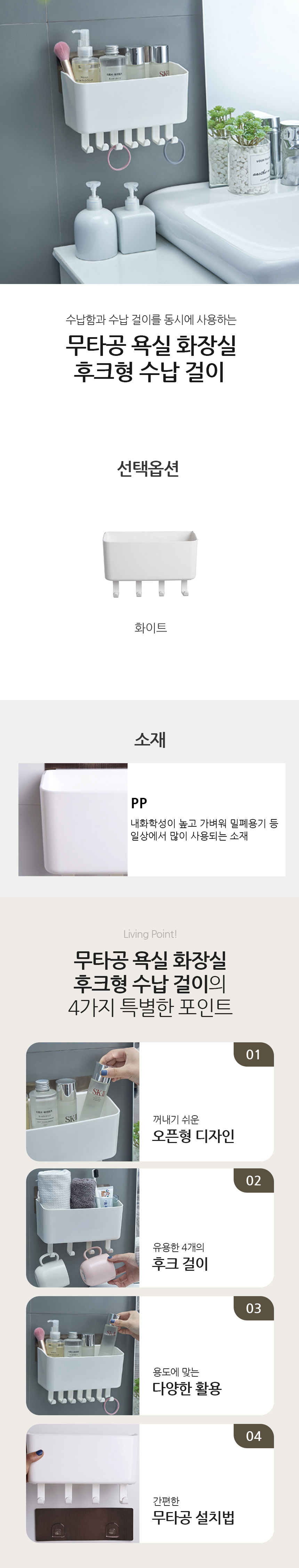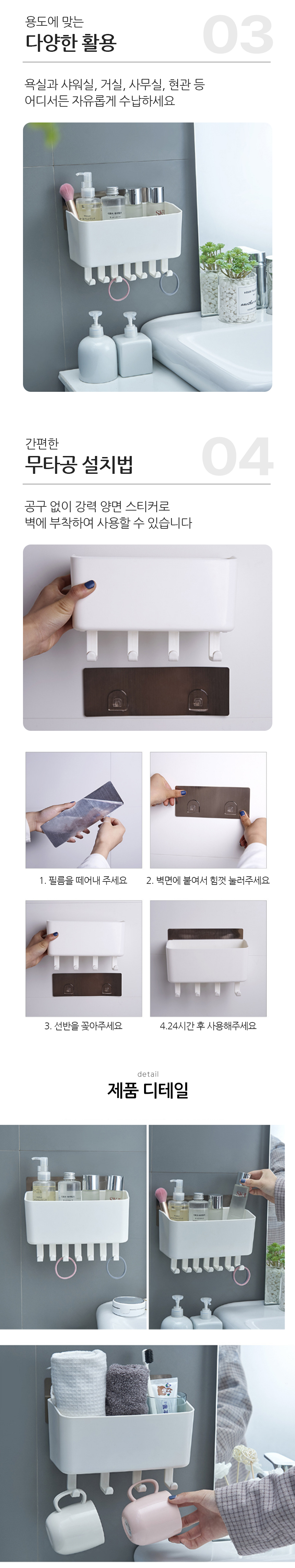 무타공 화장실 욕실 세면대 정리 수납 걸이 벽 선반
