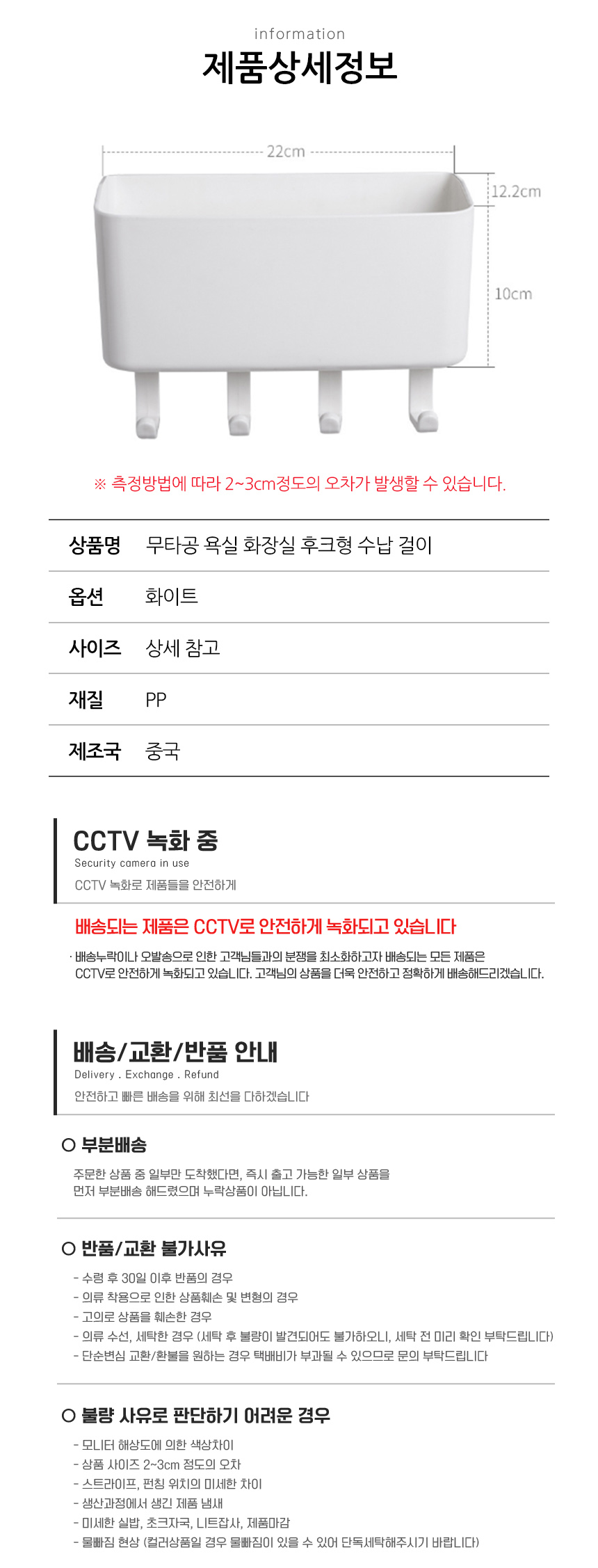 제품하자가 아닌 소비자의 단순변심, 착오구매에 따른 청약철회가 불가능한 경우 그 구체적 사유와 근거 배송ㆍ교환ㆍ반품 상세설명페이지 참고