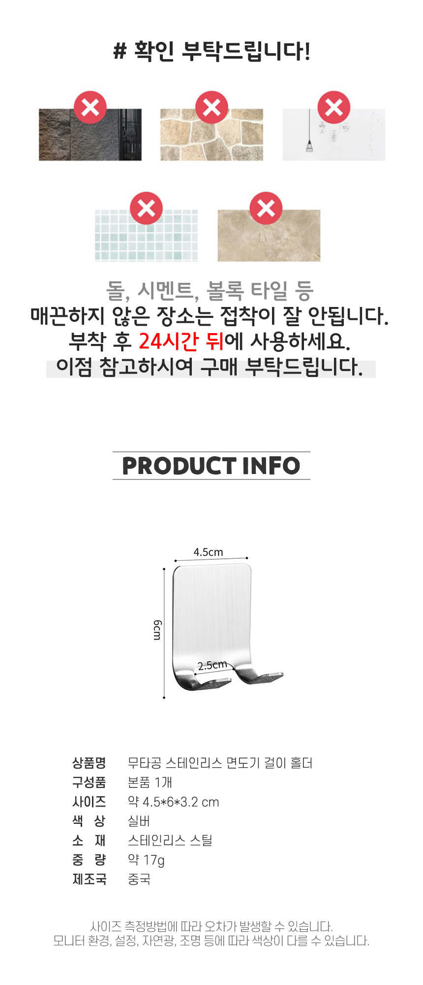 욕실 면도기 보관 걸이 꽂이 스텐 홀더 거치대 1P