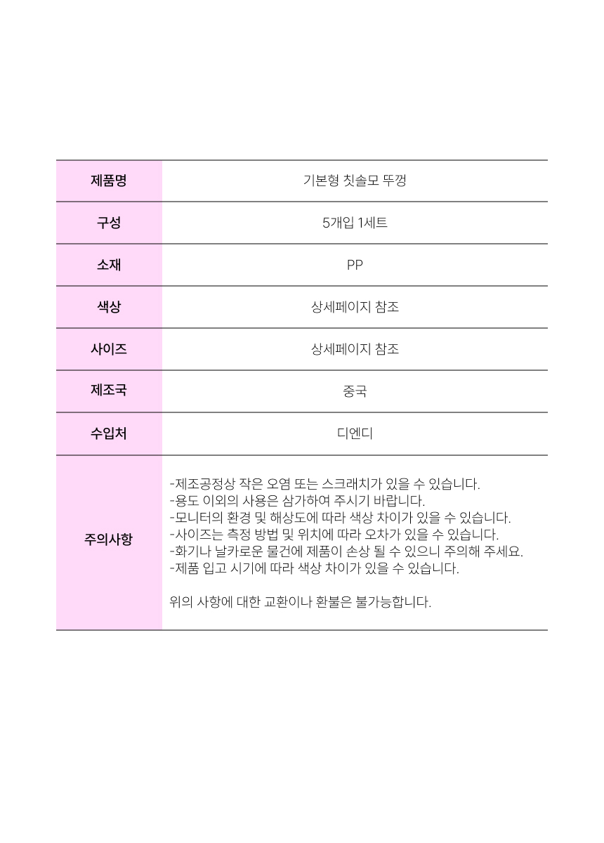 기본형 반투명 칫솔모 뚜껑 5P (색상랜덤)