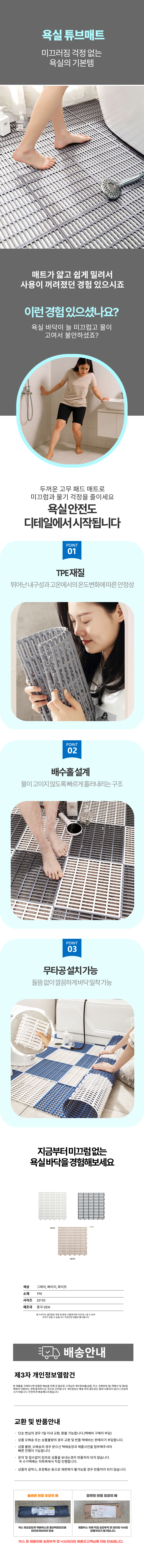 욕실 목욕탕 충격흡수 세척 무타공 고급패드 물빠짐