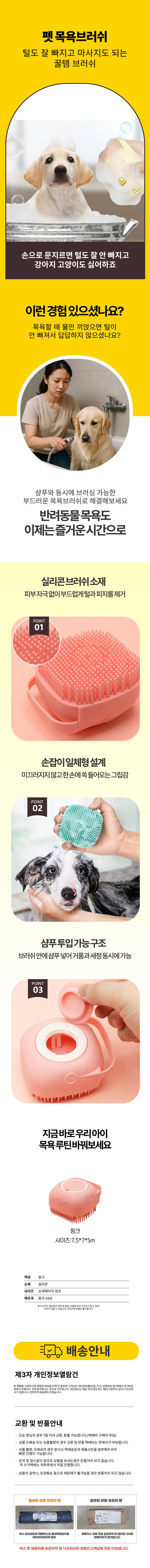 펫 목욕 브러쉬 애견 애묘 가정용 털제거 샴푸브러쉬