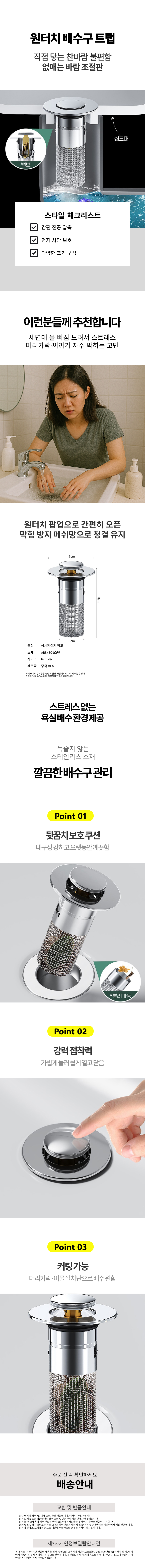 배수구 배수트랩 하수구냄새차단 세면대 막힘방지 트랩
