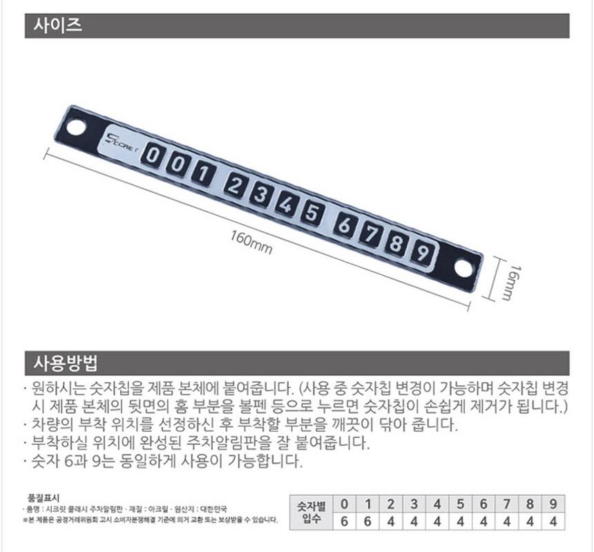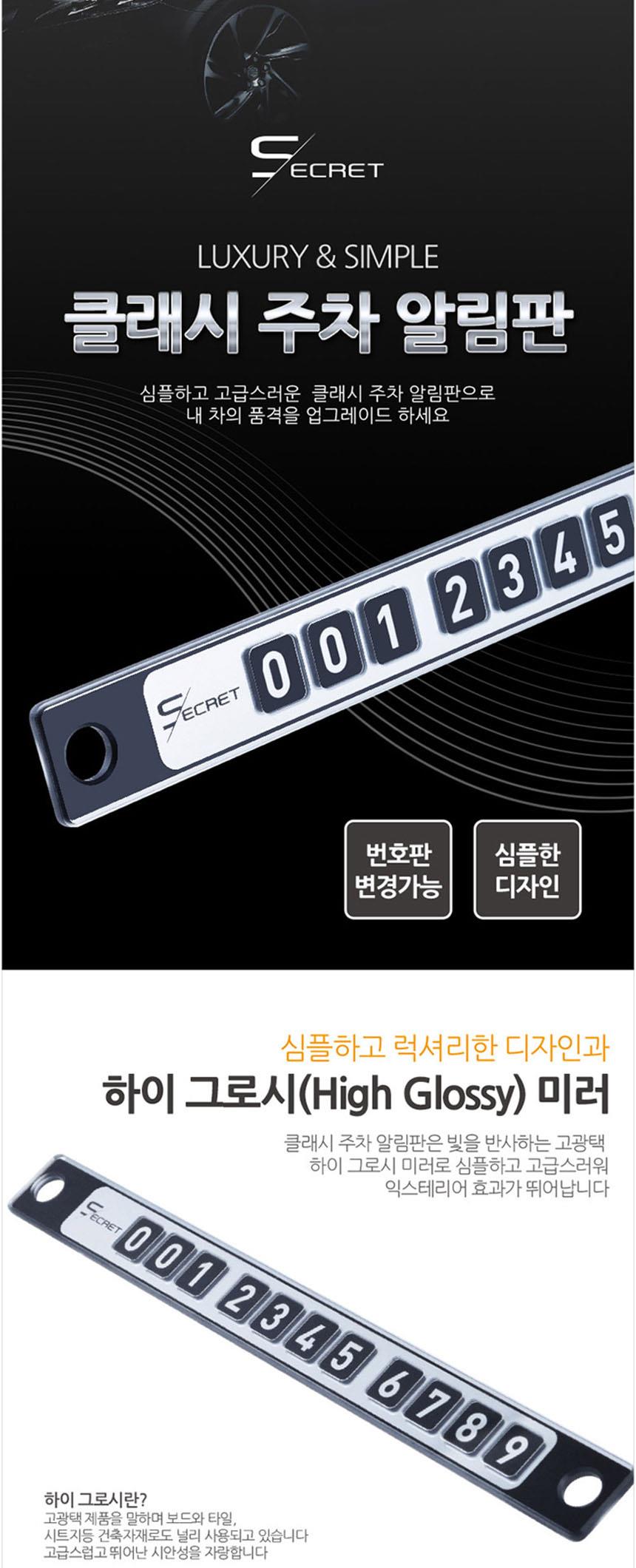 고광택 큐방형 주차알림판 자동차용품 안내판 번호판