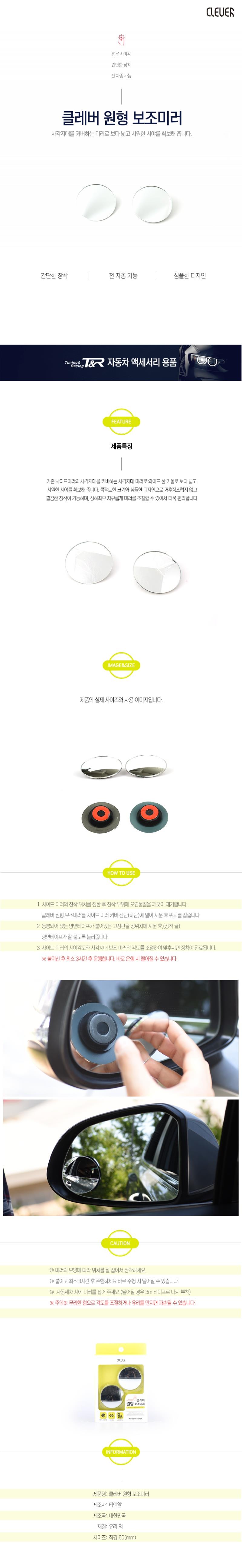 원형 사각지대 넓은 시야 보조미러 x3개 주차보조