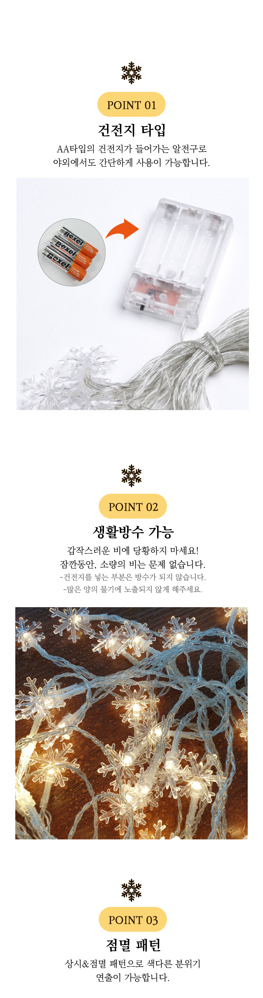 [이거찜] 데코 눈꽃 전구(6M 40알)캠핑전구 트리전구