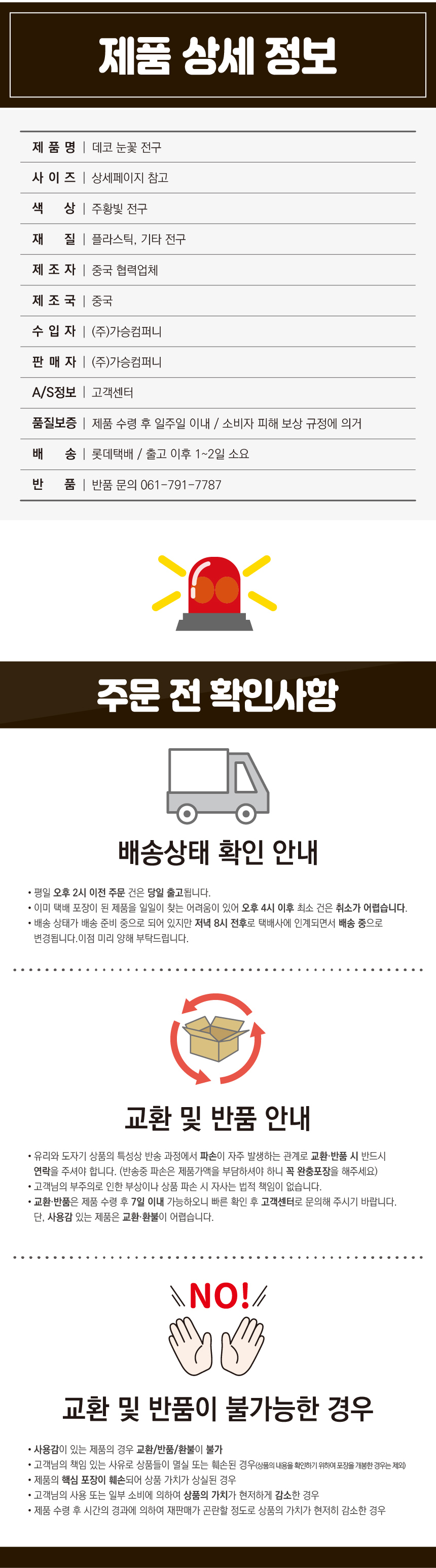 A/S 또는 소비자상담 전화번호 상세설명페이지 참고