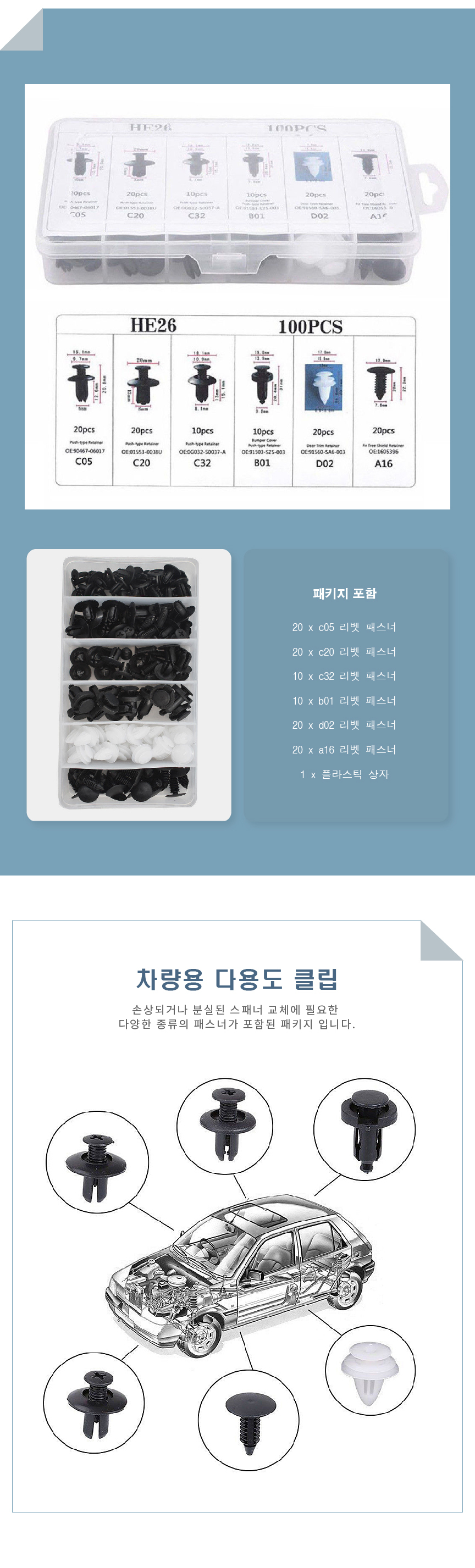 차량클립세트 패스너 클립 리벳 범퍼 도어 트림 패널