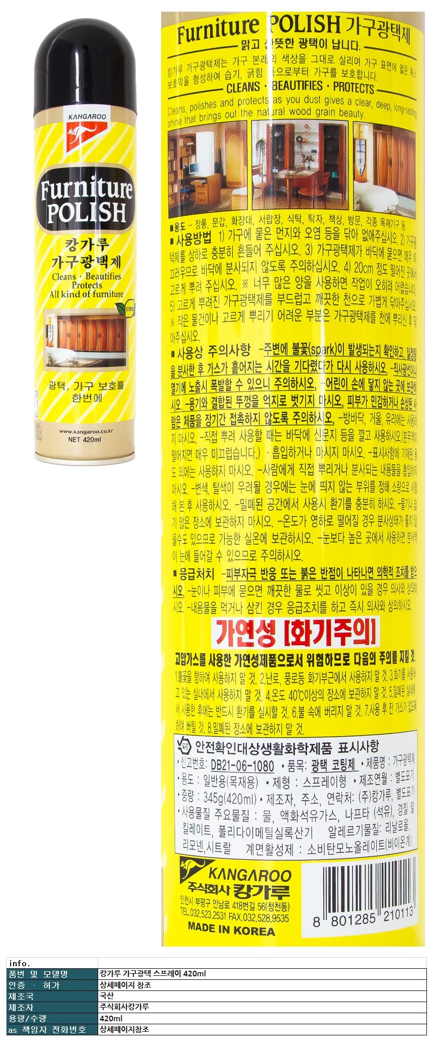 캉가루 가구광택 스프레이 420ml