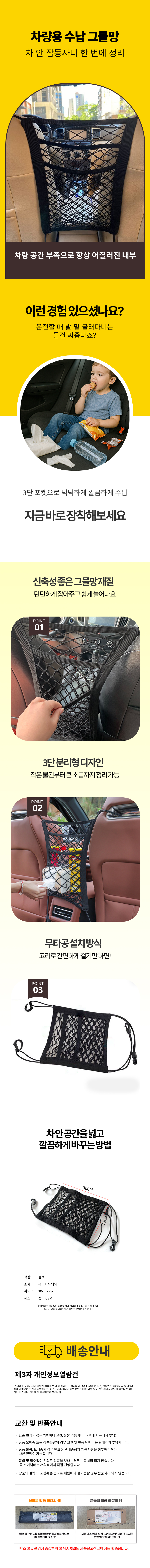 차량용 수납 그물망 3단 포켓 안전망 조수석 뒷자석