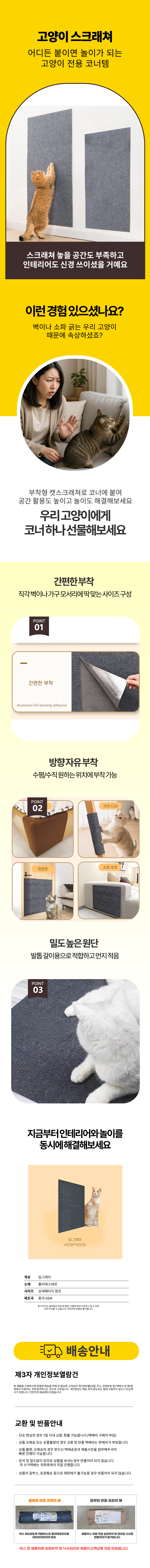 벽 부착형 고양이 스크래쳐 카페트 코너 애묘 그레이