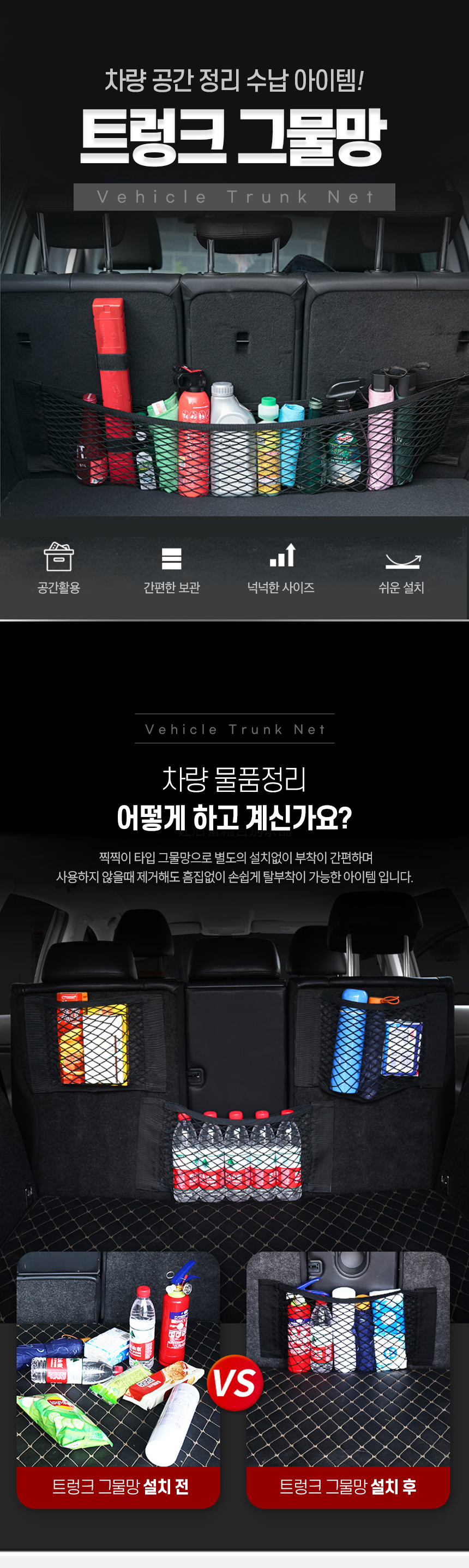 자동차 트렁크 캠핑 차박 여행 그물 네트 망 정리함